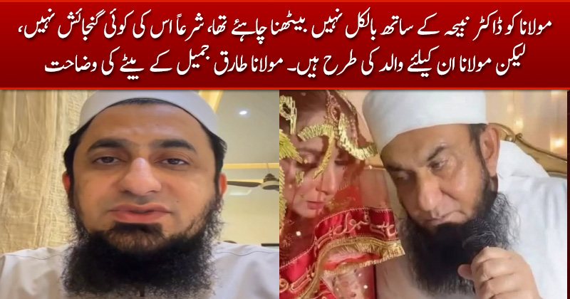 مولانا کو ڈاکٹر نبیحہ کے ساتھ بالکل نہیں بیٹھنا چاہئے تھا، شرعاً اس کی کوئی گنجائش نہیں، لیکن مولانا ان کیلئے والد کی طرح ہیں۔ مولانا طارق جمیل کے بیٹے کی وضاحت